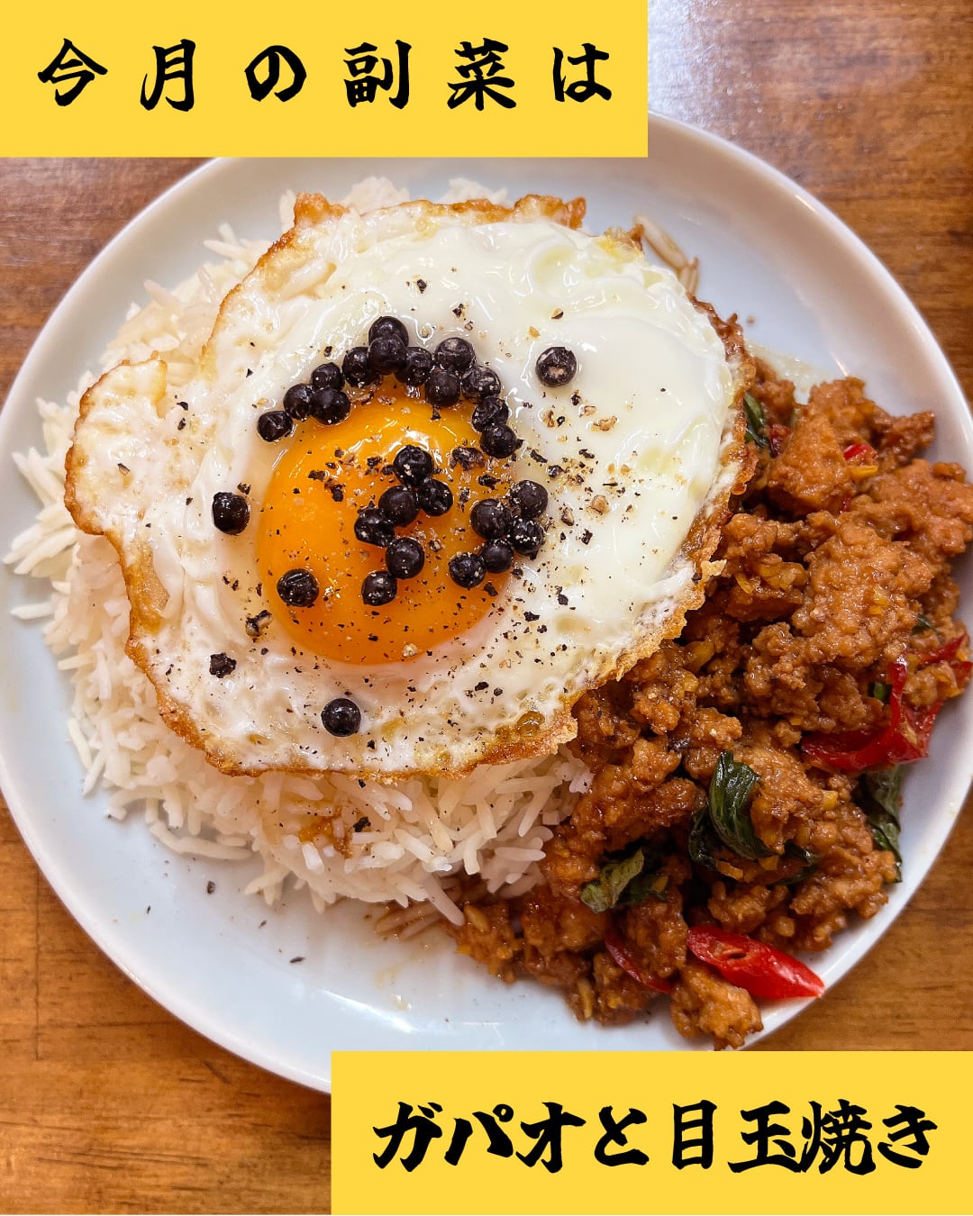 と副菜には「ガパオと目玉焼き」をご提供いたします。